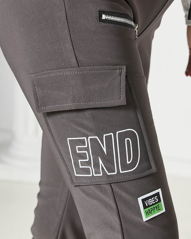 Royalfashion Ciemnoszare damskie spodnie typu bojówki z napisem