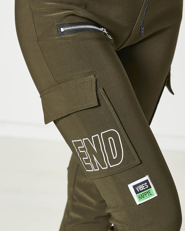 Royalfashion Ciemnozielone damskie spodnie typu bojówki z napisem