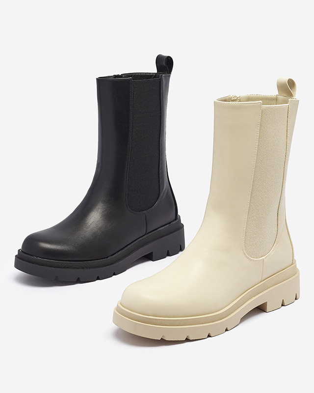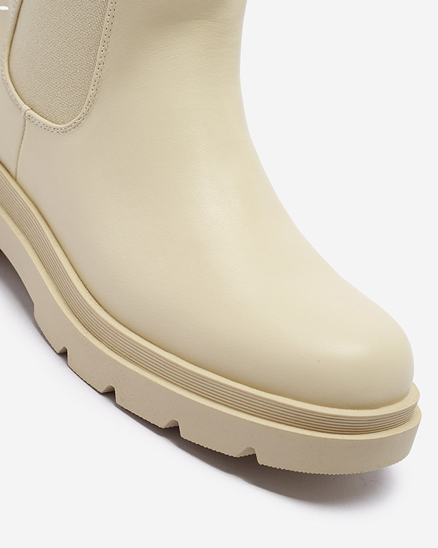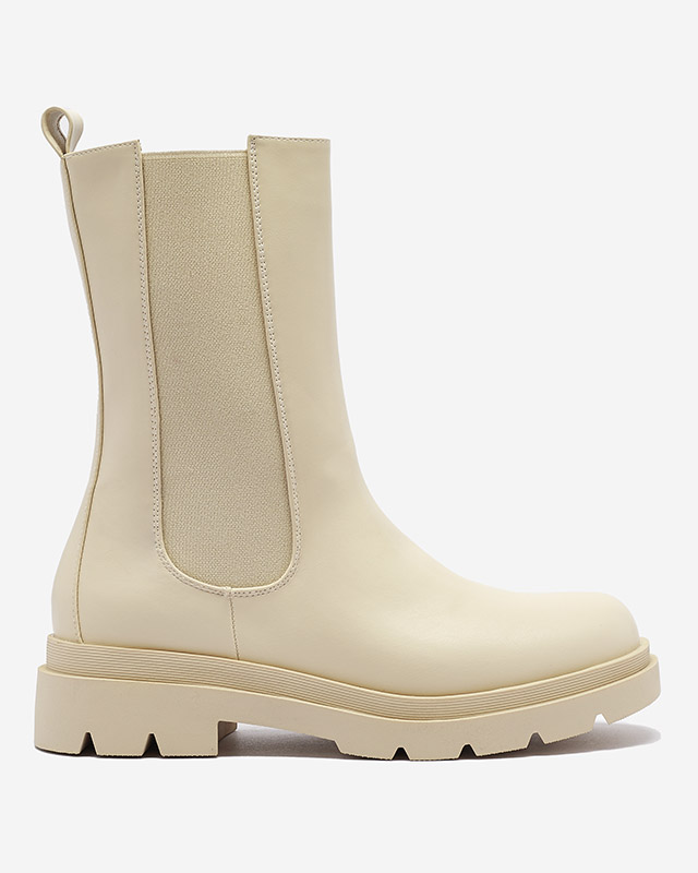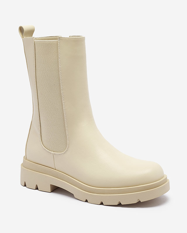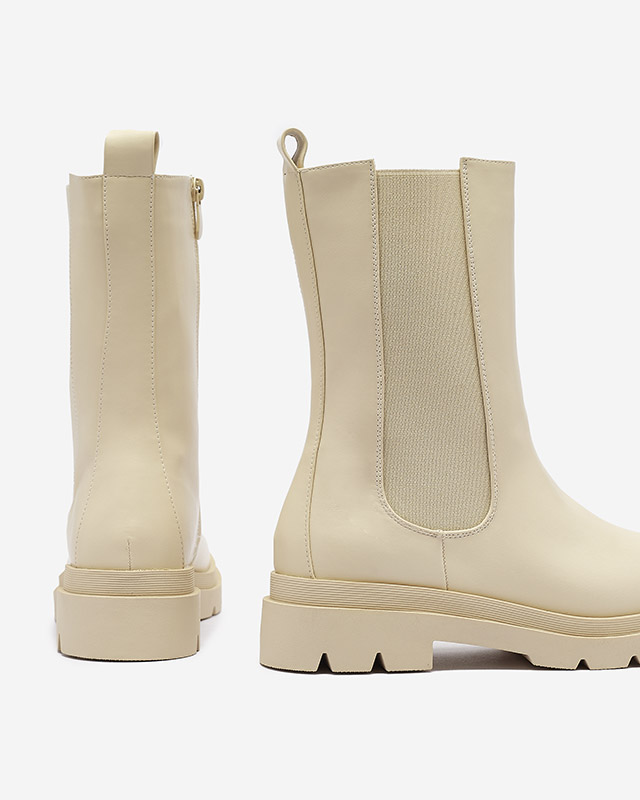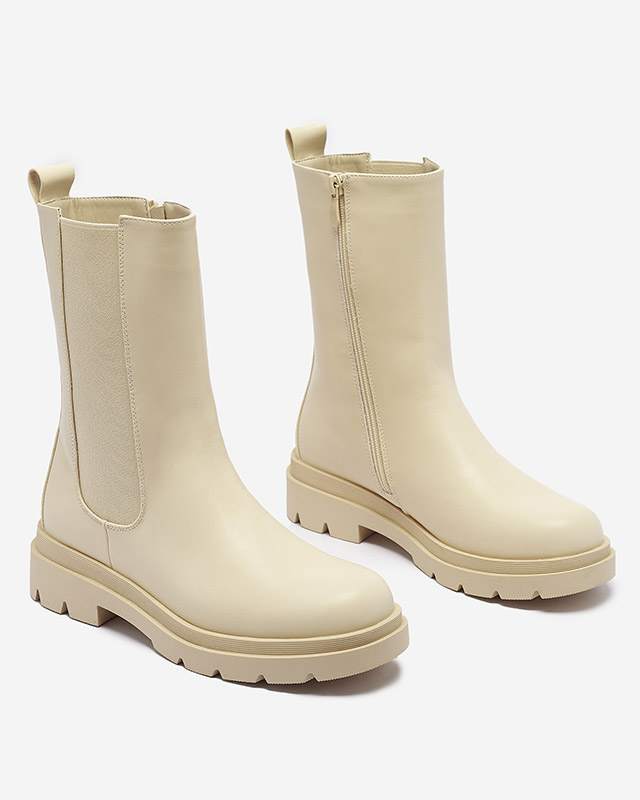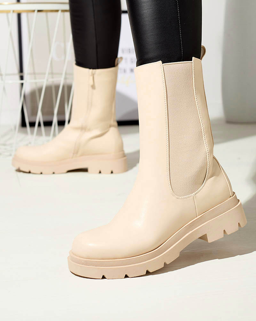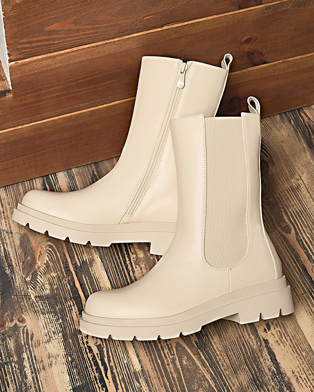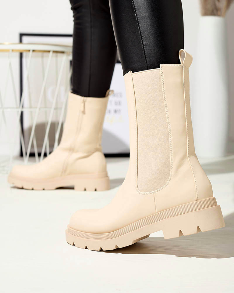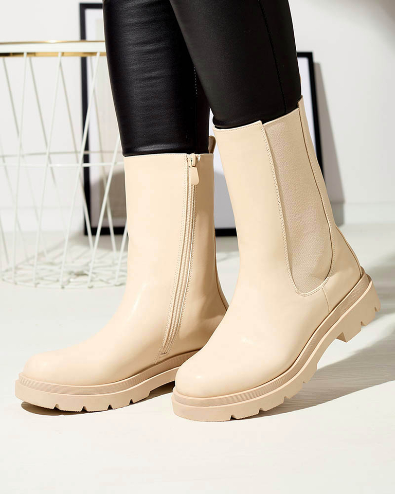 Royalfashion Beżowe damskie wysokie botki na płaskim obcasie Vedesa