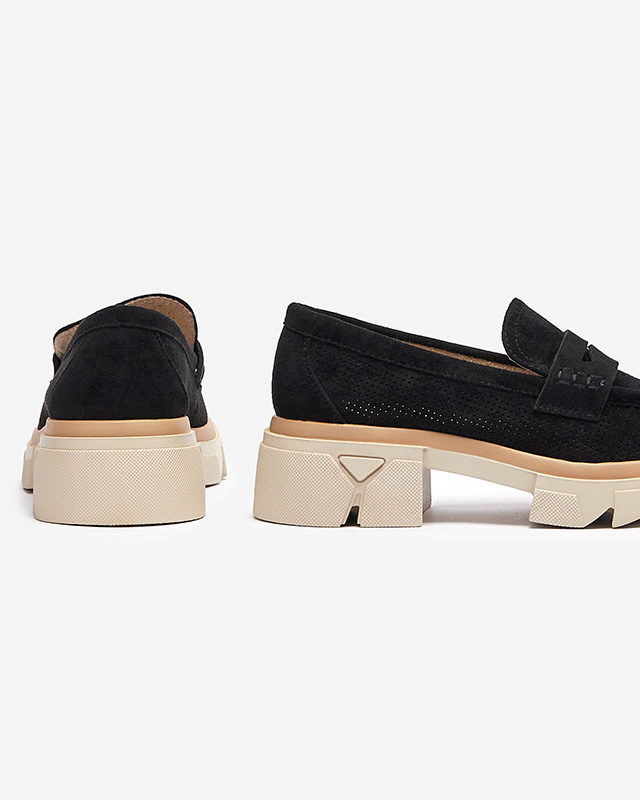 Royalfashion Czarne damskie ażurowe mokasyny na masywnej podeszwie Ejina
