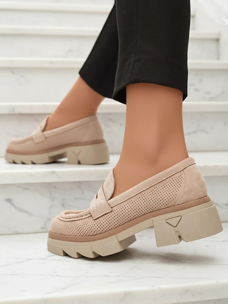 Royalfashion Beżowe damskie ażurowe mokasyny na masywnej podeszwie Ejina