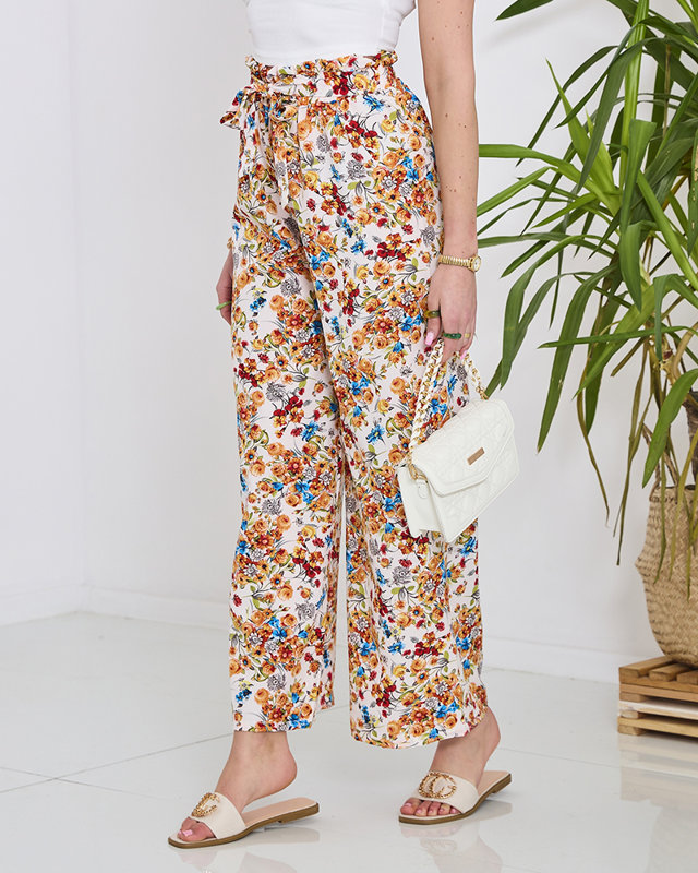 Royalfashion Damskie białe spodnie typu palazzo w pomarańczowe kwiaty