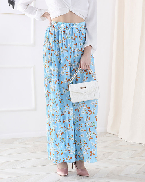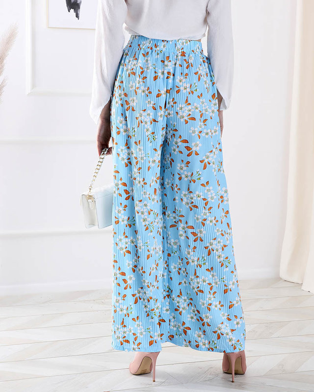 Royalfashion Damskie niebieskie spodnie materiałowe w kwiatki