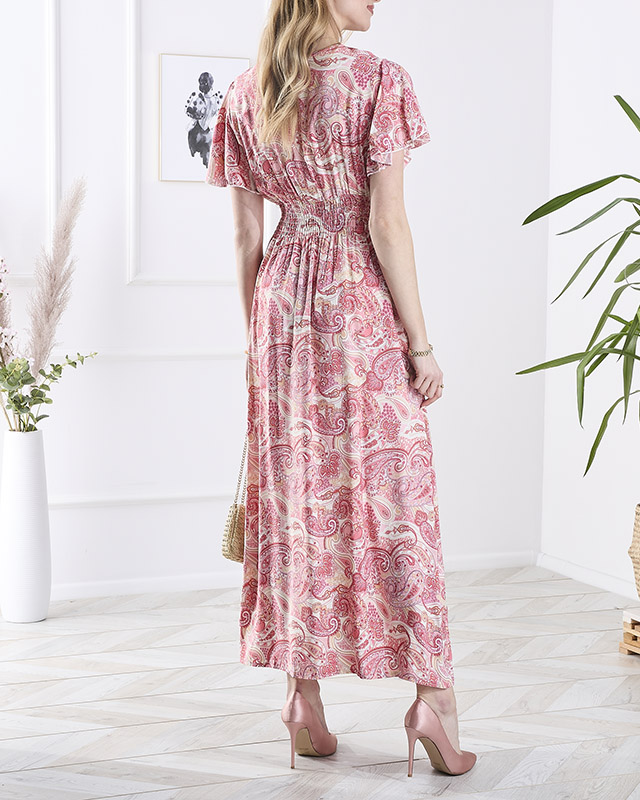 Royalfashion Wzorzysta różowa damska sukienka midi