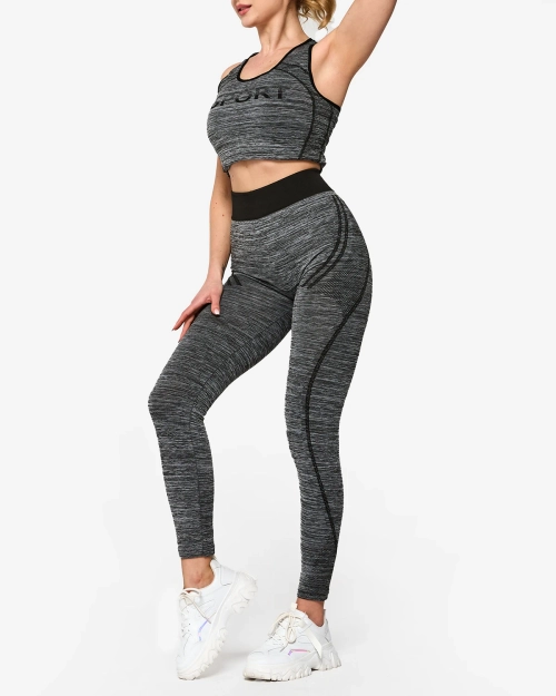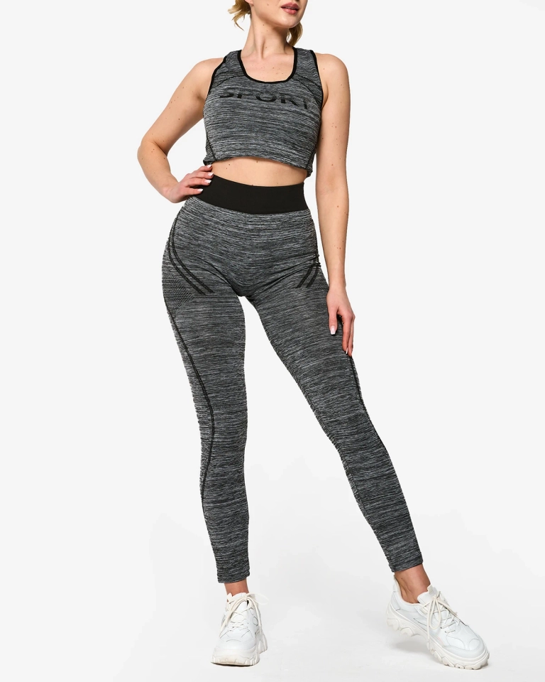 Royalfashion Szary damski komplet sportowy z czarnymi wstawkami
