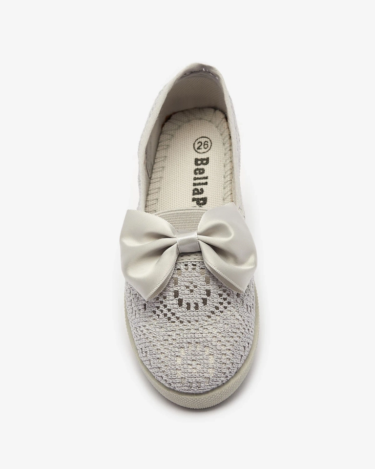 Royalfashion Dziewczęce szare tenisówki slip on z kokardką Sweet Time