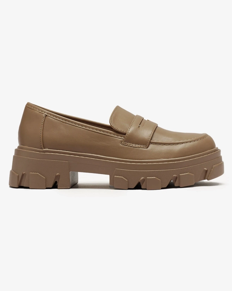 Royalfashion Damskie jasnobrązowe mokasyny na masywnej podeszwie Desika