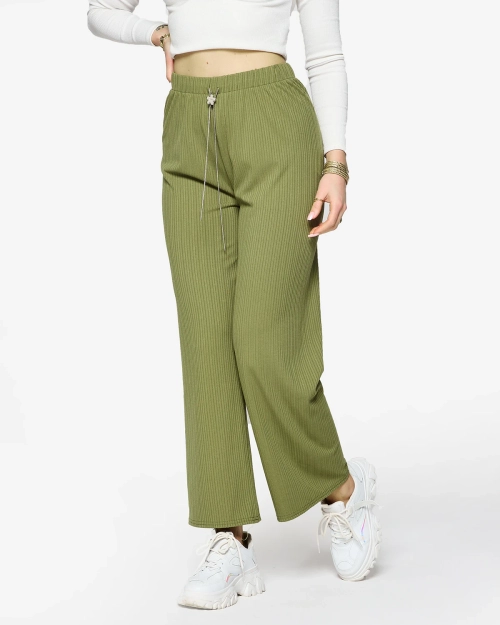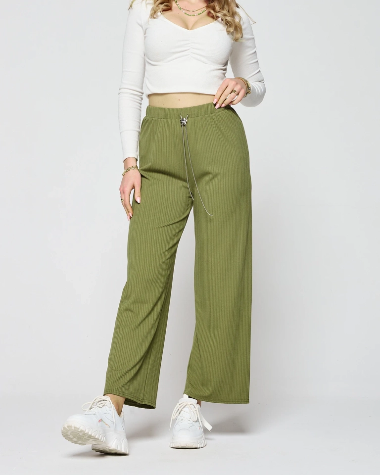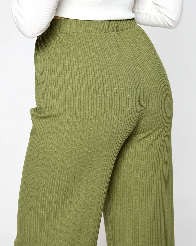 Royalfashion Zielone damskie szerokie spodnie prążkowane