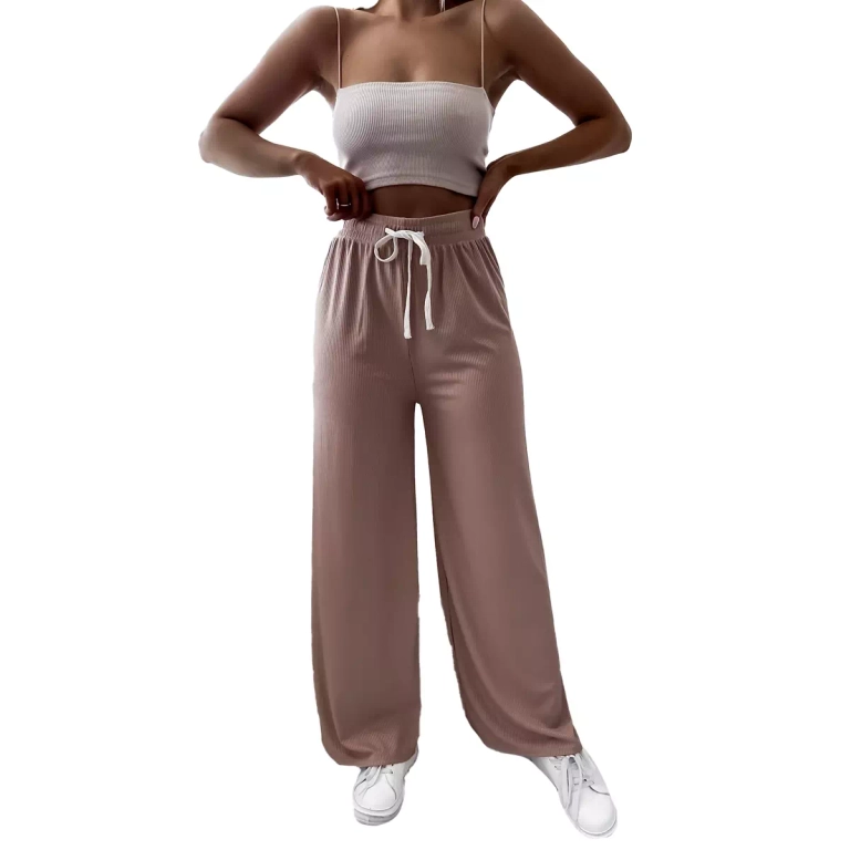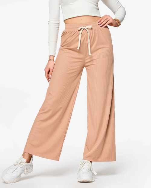Royalfashion Brązowe damskie szerokie plisowane spodnie typu palazzo