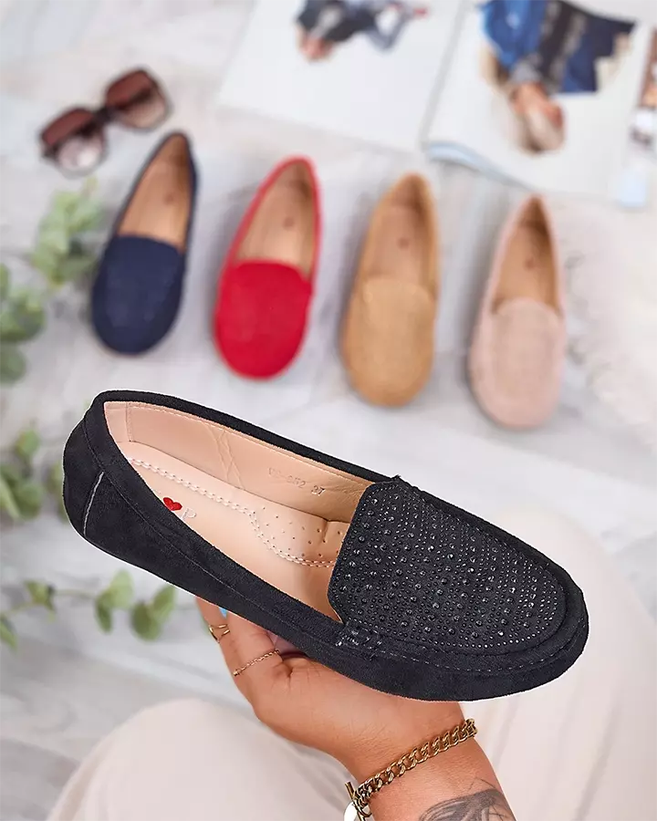 Royalfashion Czarne damskie mokasyny z cyrkoniami Bretika