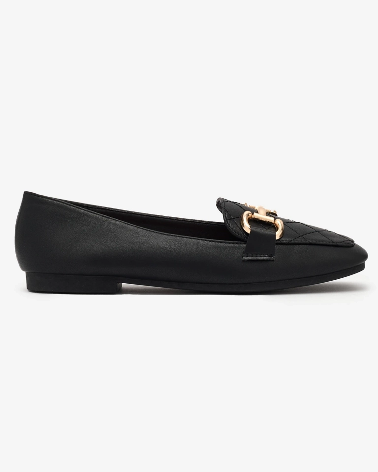 Royalfashion Czarne damskie pikowane mokasyny ze złotą ozdobą Wetifa