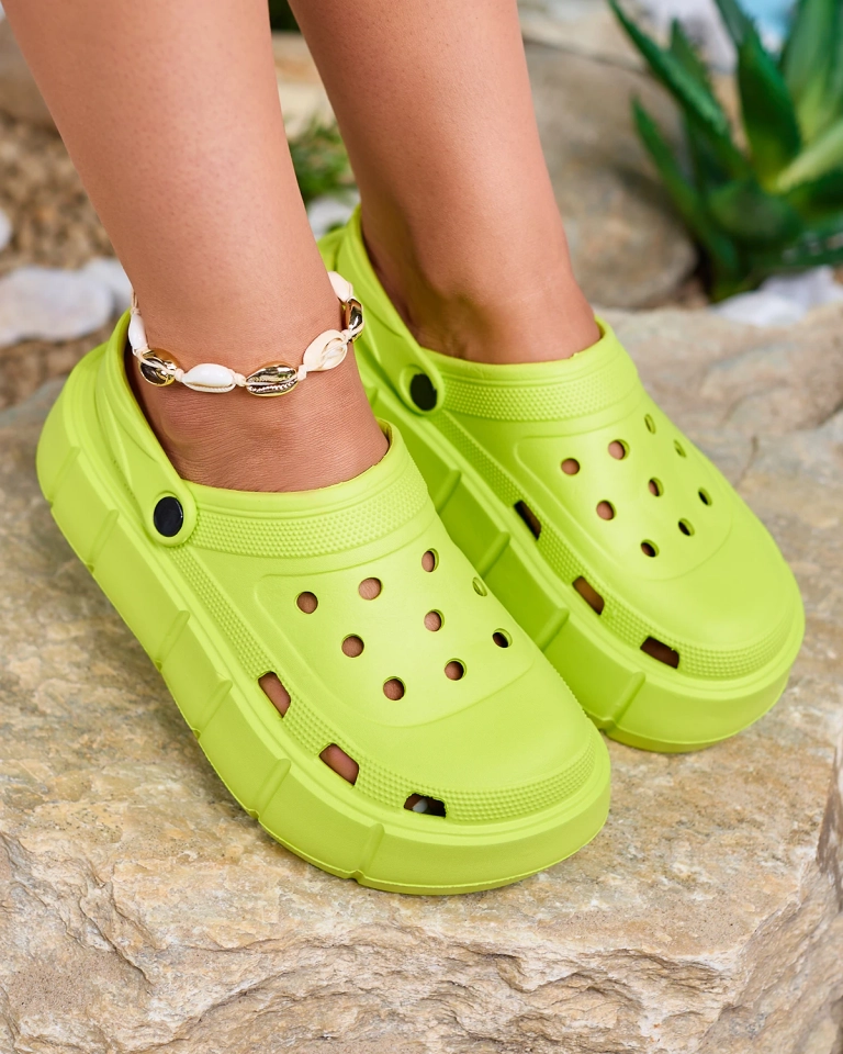 Royalfashion Neonowe zielone klapki damskie z ażurowym wykończeniem Mightty