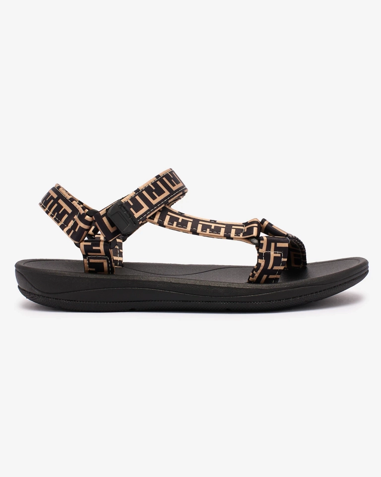Royalfashion Czarno- brązowe damskie sportowe sandały z printem Iberifa