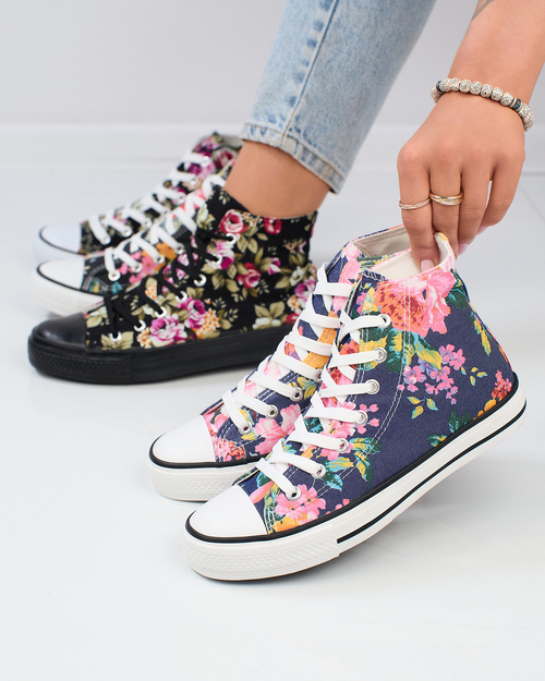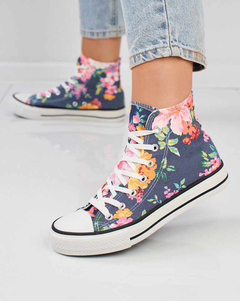 Royalfashion Ženske visoke mornarsko modre superge s pisanim cvetličnim potiskom Fahenna