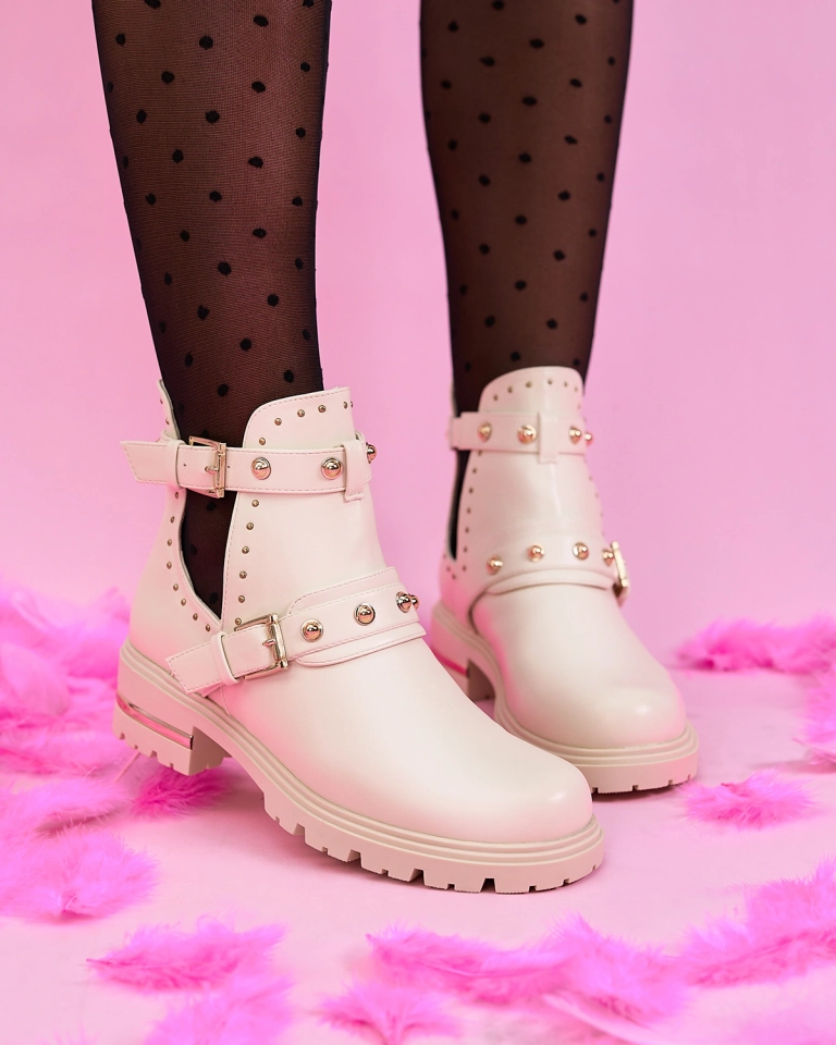 Royalfashion Krem ženski okrašeni škornji Jewel Walk z ravnimi petami