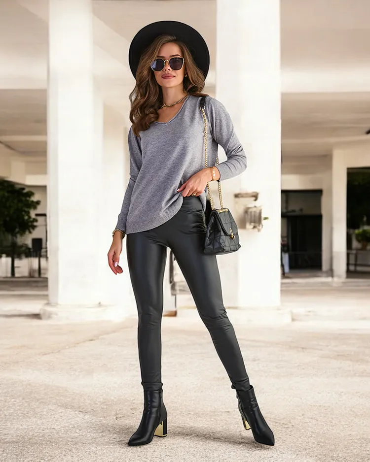 Royalfashion Siv ženski pulover s srčnim izrezom
