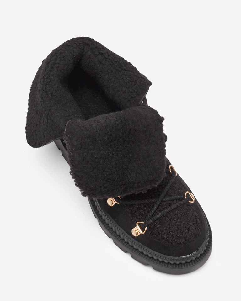 Royalfashion Črni izolirani ženski škornji traper z ovčjo kožo Lery Walk