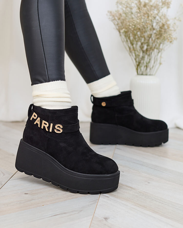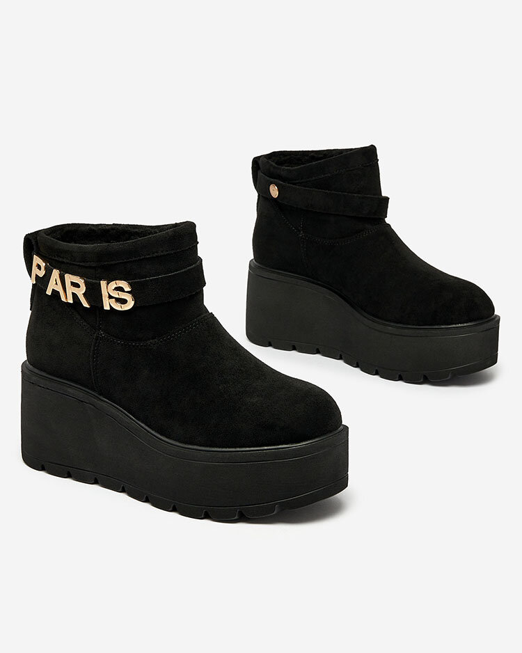 Royalfashion Črni ženski škornji a'la snežni škornji z ornamentom Parisela