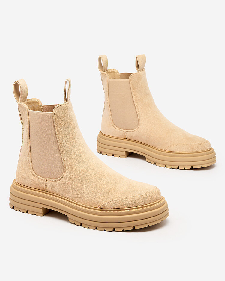 Royalfashion Bež ženski škornji z okrasnim trakom Loffdo