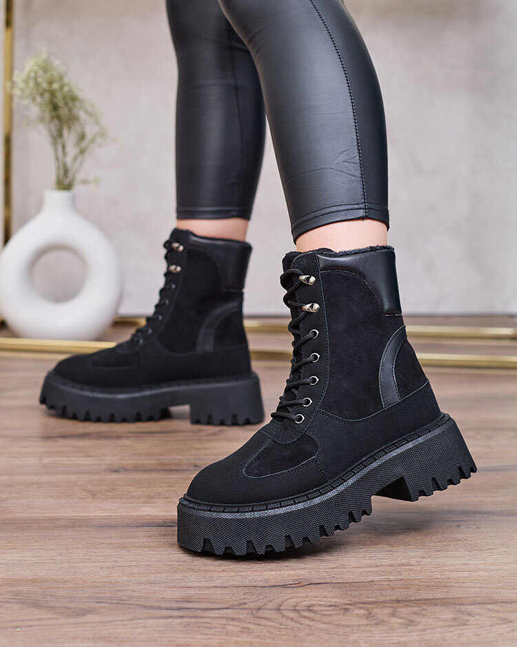 Royalfashion Črni ženski škornji Macnev z vezalkami