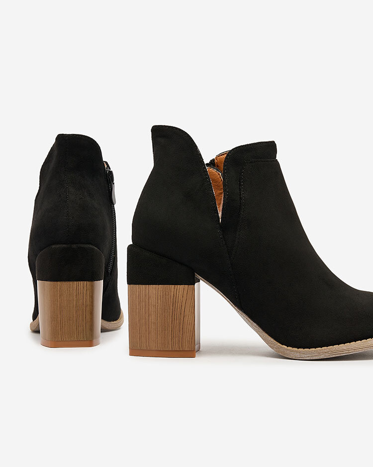 - Elegantni ženski škornji iz eko semiša so kot nalašč za hladnejše dni. Zgornji del se zapenja z zadrgo, v notranjosti pa je krzno. Model na višjem položaju in z okroglim noskom. Super dodatek k vašim priložnostnim oblačilom!
