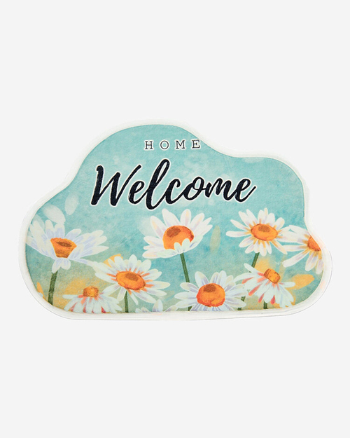 - Majhna barvita preproga s kratkim lasom in napisom "Dobrodošli doma". Je mehka in nežna, zato je izjemno prijetna na dotik. Dodatna prednost preproge je njena nedrseča spodnja stran.