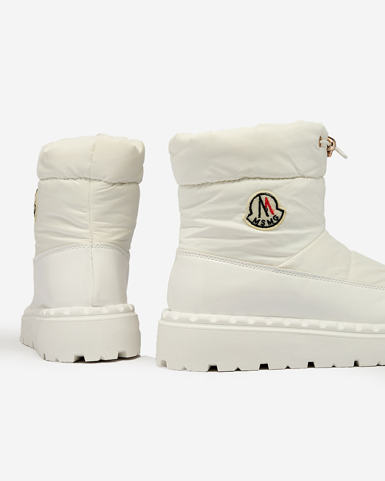 - Brezčasni ženski snežni škornji. Zgornji del modela iz materiala a'la oljna tkanina in vložki iz lakiranega eko usnja. Notranjost je izolirana v obliki krzna, čevlji pa drsijo in imajo šivanko. Odlični za hladnejšo sezono!