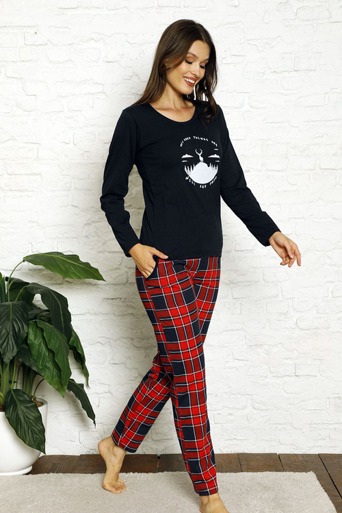 Royalfashion Ženska pižama v mornarsko modri in rdeči barvi