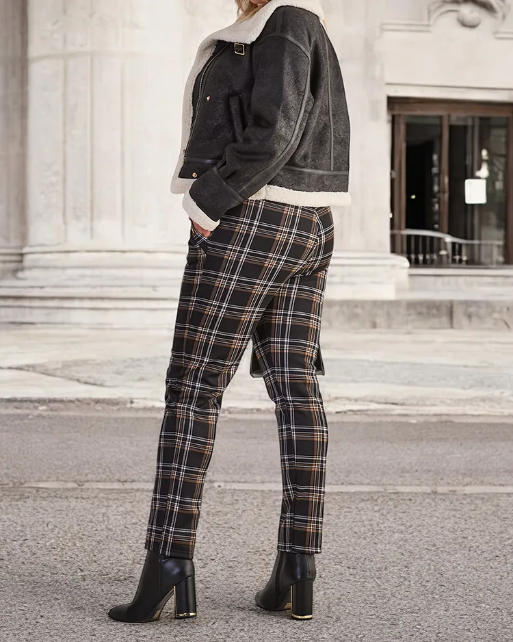 - Ženske hlače tegging, izdelane iz raztegljivega materiala. Model ima širok elastičen pas in 2 žepa z naramnicami. Izdelek je izoliran z debelim krznom in okrašen s karirastim vzorcem. Hit te sezone!