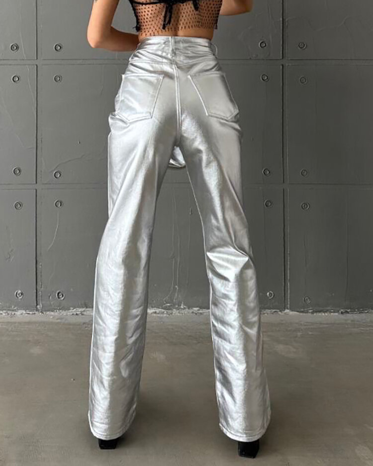 Royalfashion Ženske kovinske široke hlače