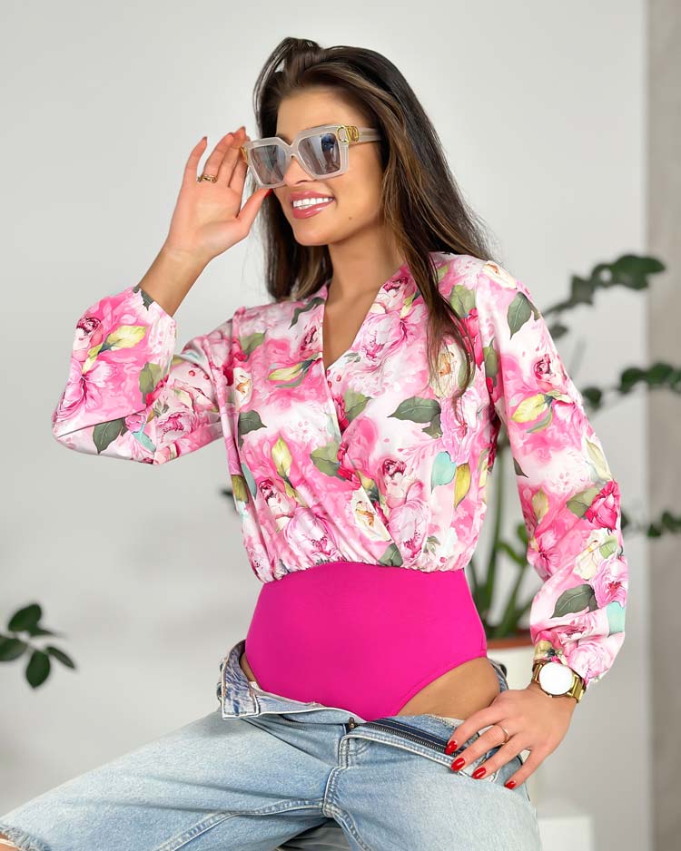 - Telovnik s potiskom iz prijetnega materiala, ki izboljša postavo. Model s srčastim izrezom in dolgimi rokavi. V mednožju je skrito zapenjanje s kavljem in zanko. Modni predlog za vsak dan in tudi za večerne izhode!