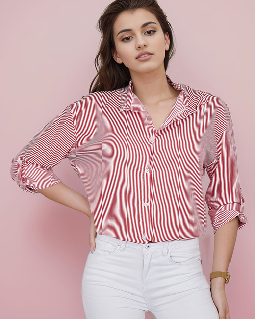 - Senzacionalna ženska črtasta srajca z dolgimi rokavi. Model z ovratnikom se zapenja z gumbi. Mora biti v omari vsake ženske!