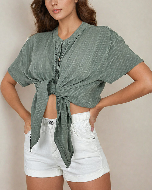 - Senzacionalna ženska srajca s kratkimi rokavi. Model z ovratnikom se zapenja z gumbi. Mora biti v omari vsake ženske!