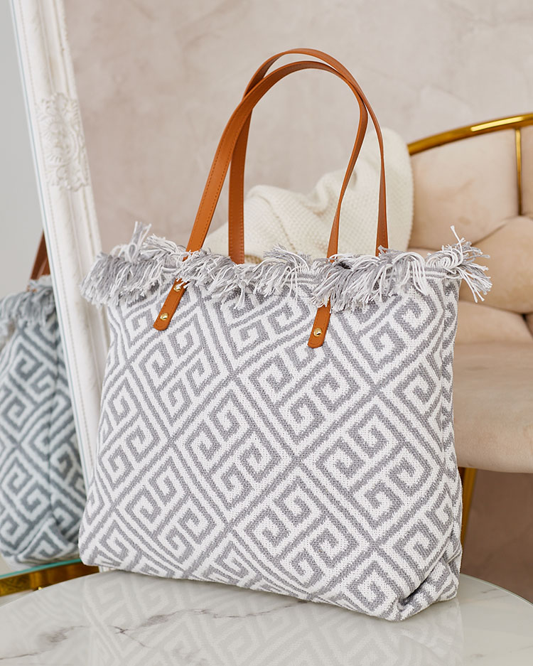- Velika ženska torba iz dekorativnega blaga. Model ima 1 predal in se zapira z zadrgo. Odlična za vsakodnevno uporabo!