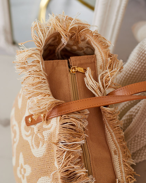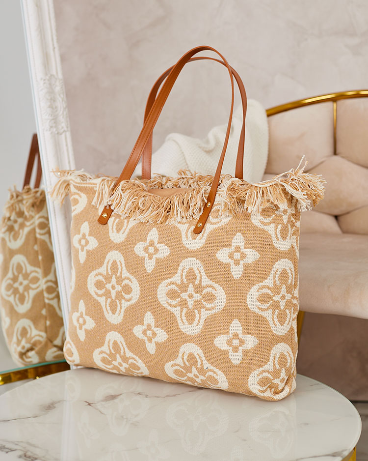 - Velika ženska torba iz vzorčastega blaga. Model ima 1 predal in se zapenja z zadrgo. Odlična za vsak dan ali za na plažo!