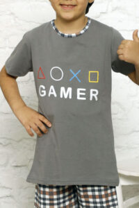 - Dvodelna pižama iz 100 % mehkega bombaža. Komplet ima dekorativni potisk. Ta model je odlična izbira za toplejše noči! OPOMBA: Natančnost meritev (+/-) 1 cm.