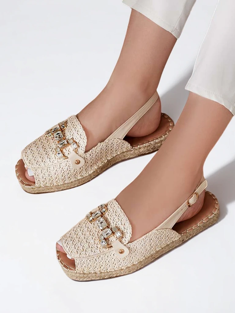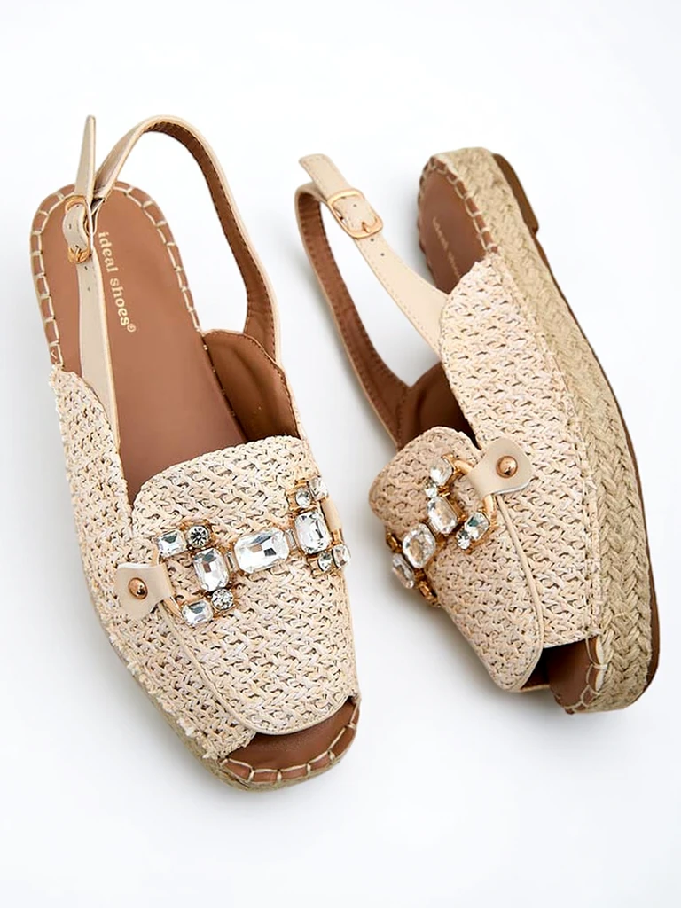 - Edinstvene ženske espadrile iz sintetičnega materiala. Ravni podplat, okrašen z vrvico iz jute, zagotavlja udobje. Model za obuvanje z usnjenim pasom in izpostavljenimi prsti. Odličen dodatek k poletnim oblačilom!