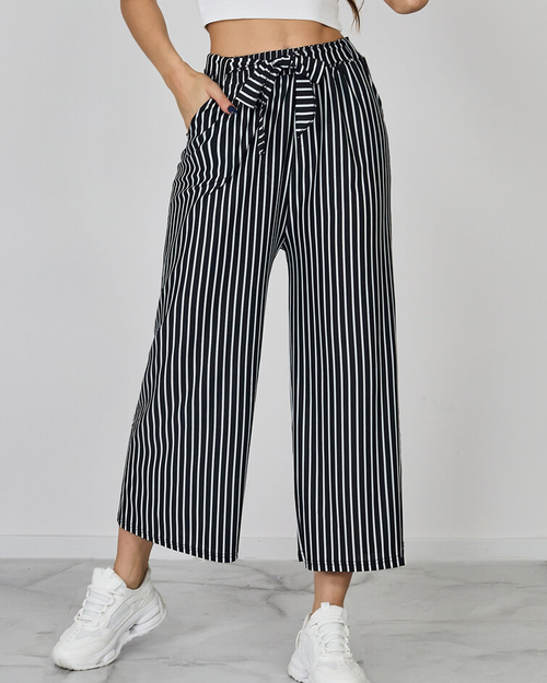 Royalfashion Ženske široke črtaste hlače 7/8