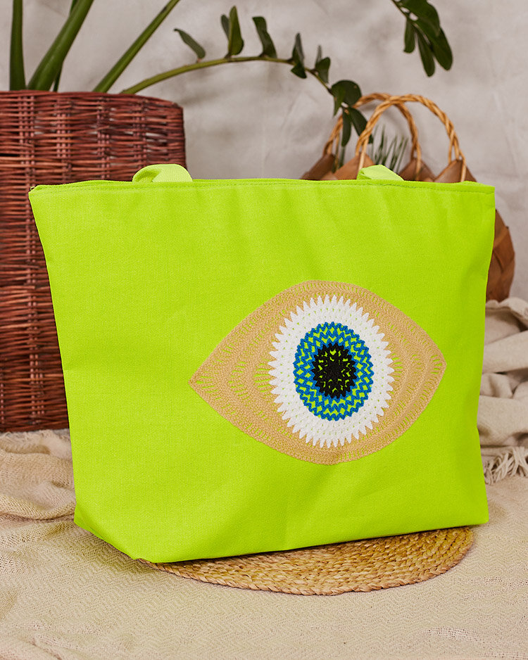 - Velika ženska torba iz blaga z izvezenim vzorcem. Model ima 1 predal, 1 notranji predal in se zapenja z zadrgo. Odlična za vsak dan ali za na plažo!