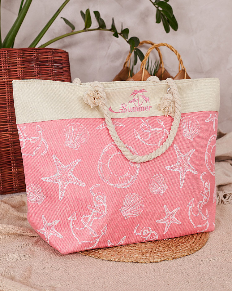 - Velika ženska torba iz blaga s prazničnim vzorcem. Model ima 1 predal in se zapenja z zadrgo. Odlična za vsak dan ali za na plažo!