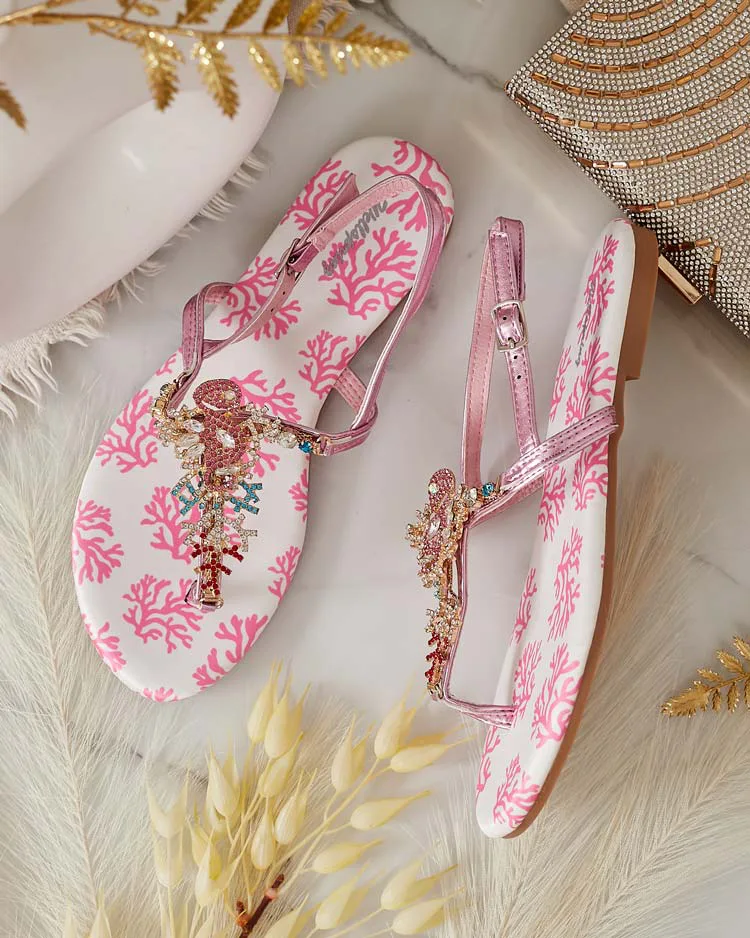 - Modni ploski ženski sandali, v celoti izdelani iz ekološkega usnja. Zapenjajo se z zaponko z okraski za zapenjanje, ki jim dodajajo subtilnost. Odlični za poletne sprehode in posebne priložnosti!