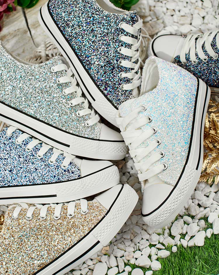 - Ženske superge s pokrito peto, izdelane iz tkanine. Model odlikujejo okrašeni bleščice in zgornji del z vezalkami. Odlične bodo za vsakodnevno nošenje!
