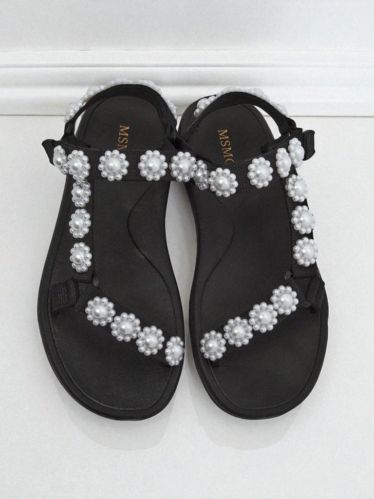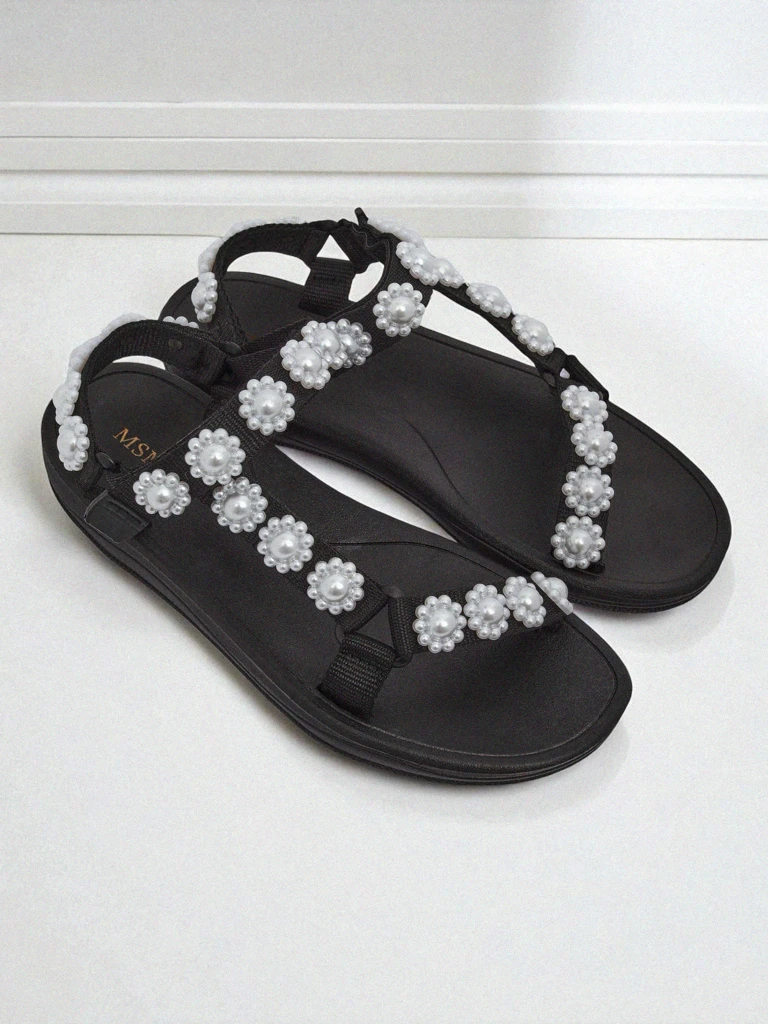 Ženski sandali Royalfashion Perseida črni na platformi z biseri