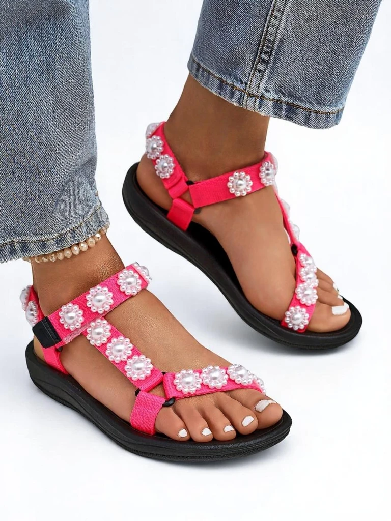 Sandali Livia Rosa – Udobni ženski sandali Royalfashion z bisernimi okrasnimi kamenčki