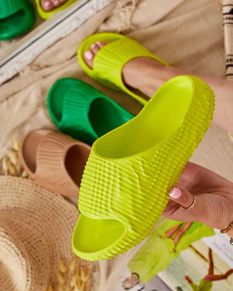 - Odlične ženske gumijaste japonke z ravnim podplatom. Odlikuje jih okrasni reliefni zgornji del iz gume. Odlična izbira za počitnice!