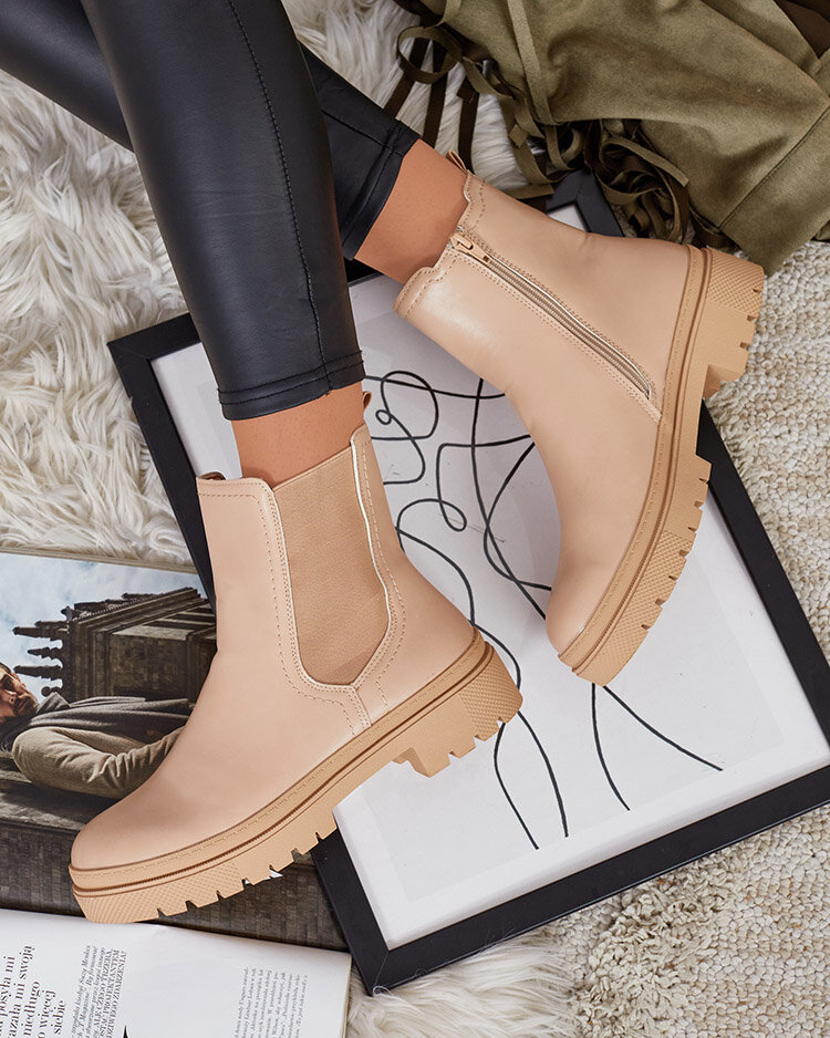 - Škornji z debelejšim podplatom - slog in udobje v enem. Elastični vložek na strani in zapiranje z zadrgo za lažje nošenje. V celoti izdelani iz eko usnja in notranjega vložka iz blaga. Ta model vam bo dal samozavest!