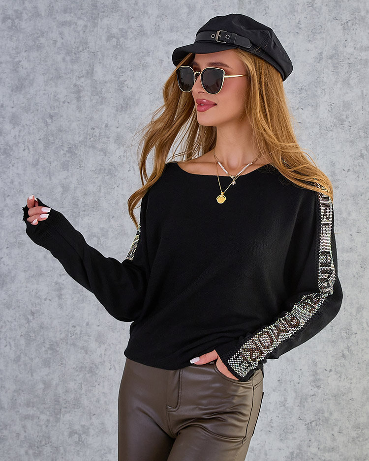 - Ženski pulover z okroglim izrezom iz prijetne tkanine. Model ima dolge rokave in je okrašen s cirkoni. Must have te sezone!