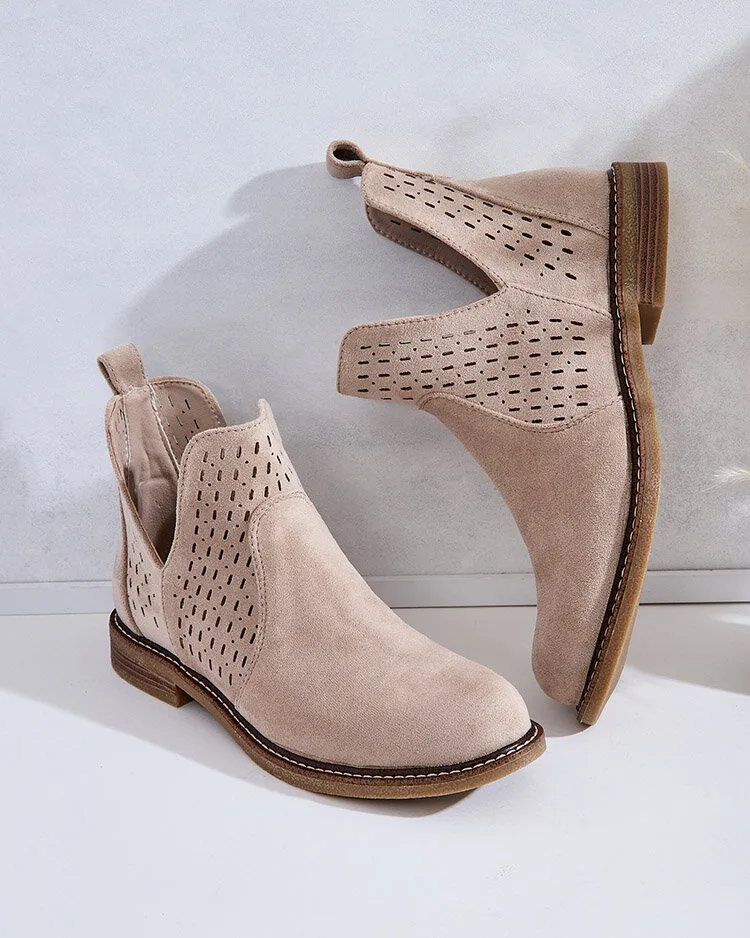 - Škornji z ravnim podplatom - slog in udobje v enem. Izrez na gležnju omogoča enostavno obuvanje. V celoti izdelani iz eko semiša in naravnega usnja v notranjosti. Ta model vam bo dal samozavest!