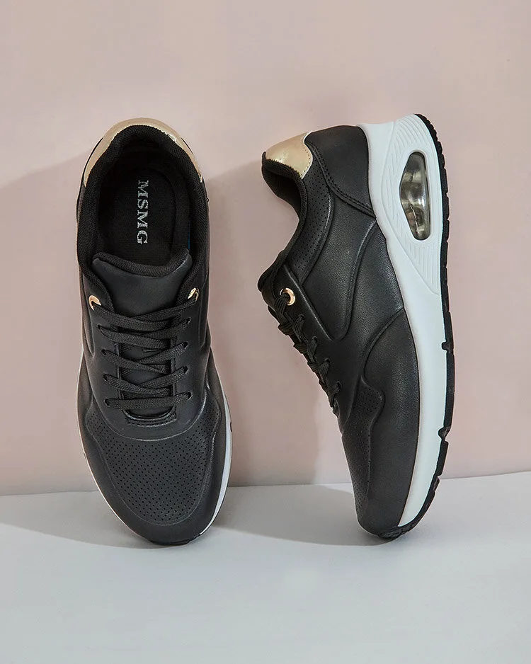 • Modne ženske športne copate na debelejšem podplatu iz ekološkega usnja. V notranjosti vložek iz tkanine, model z vezalkami. Bile bodo odličen okras za vsakodnevno oblačenje.