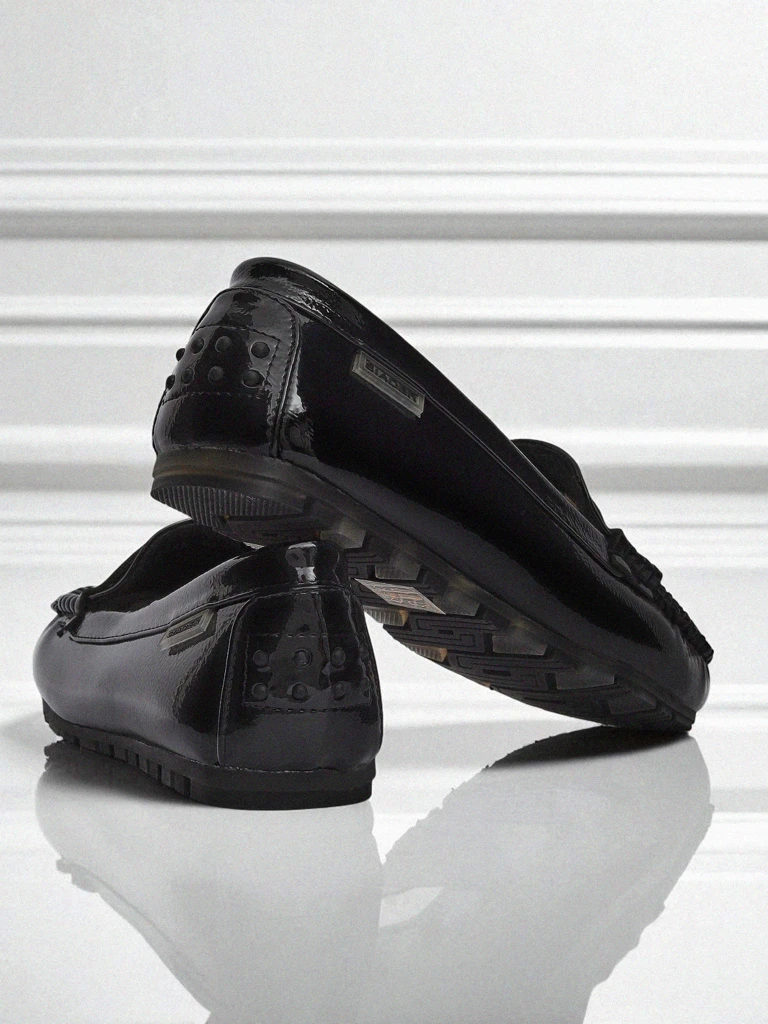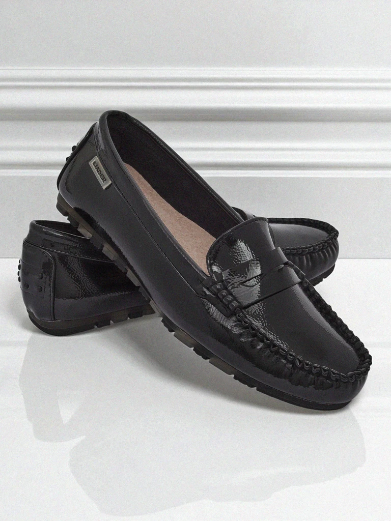 Ženski mokasini Cyra Nero iz lakiranega ekološkega usnja, klasični italijanski slog